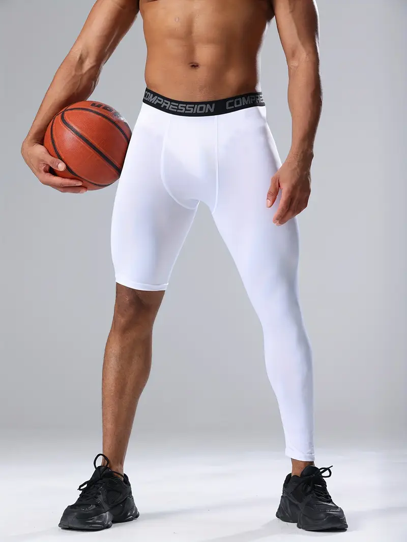 Calça Masculina Segunda Pele Compressão de Uma Perna Atlética Esquerda